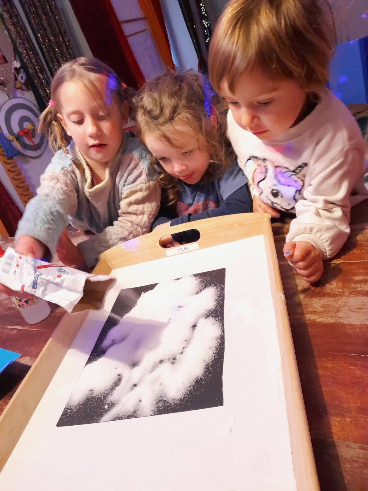 Wir basteln Schneeflockenbilder mit Salz und Kleber