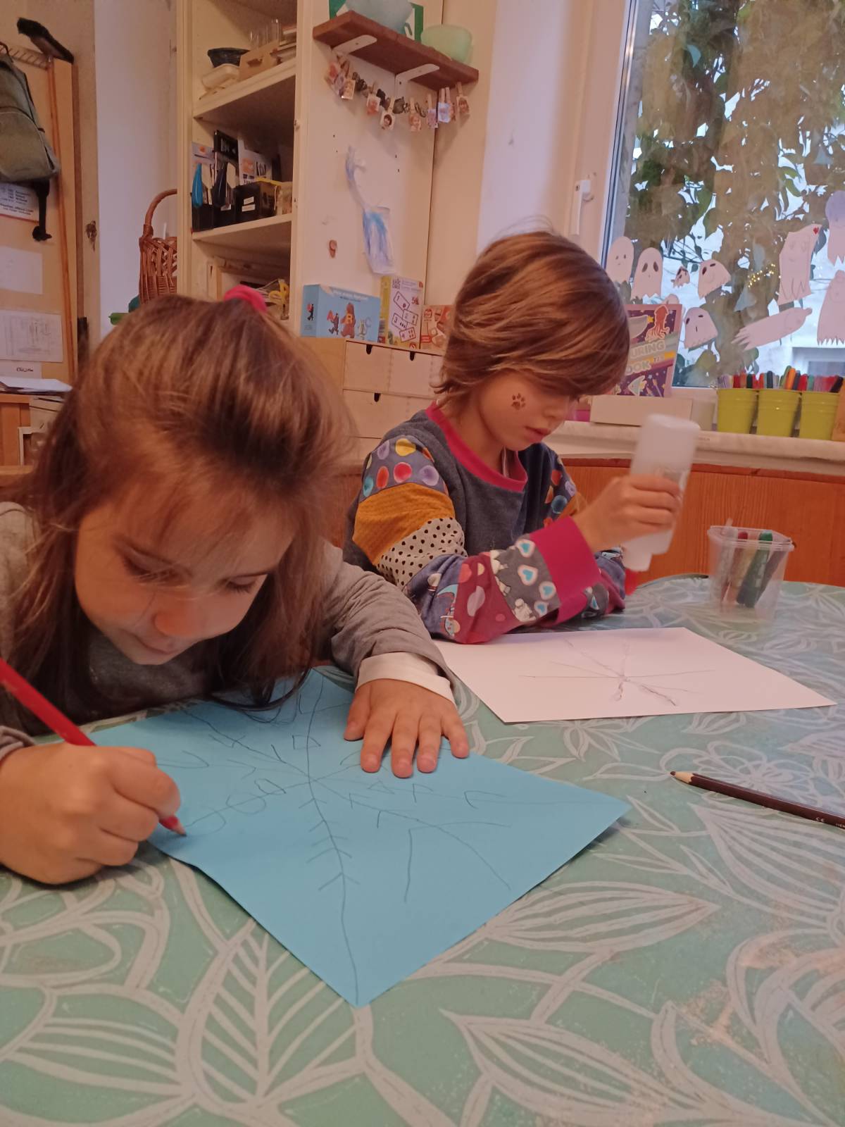 Wir basteln Schneeflockenbilder mit Salz und Kleber