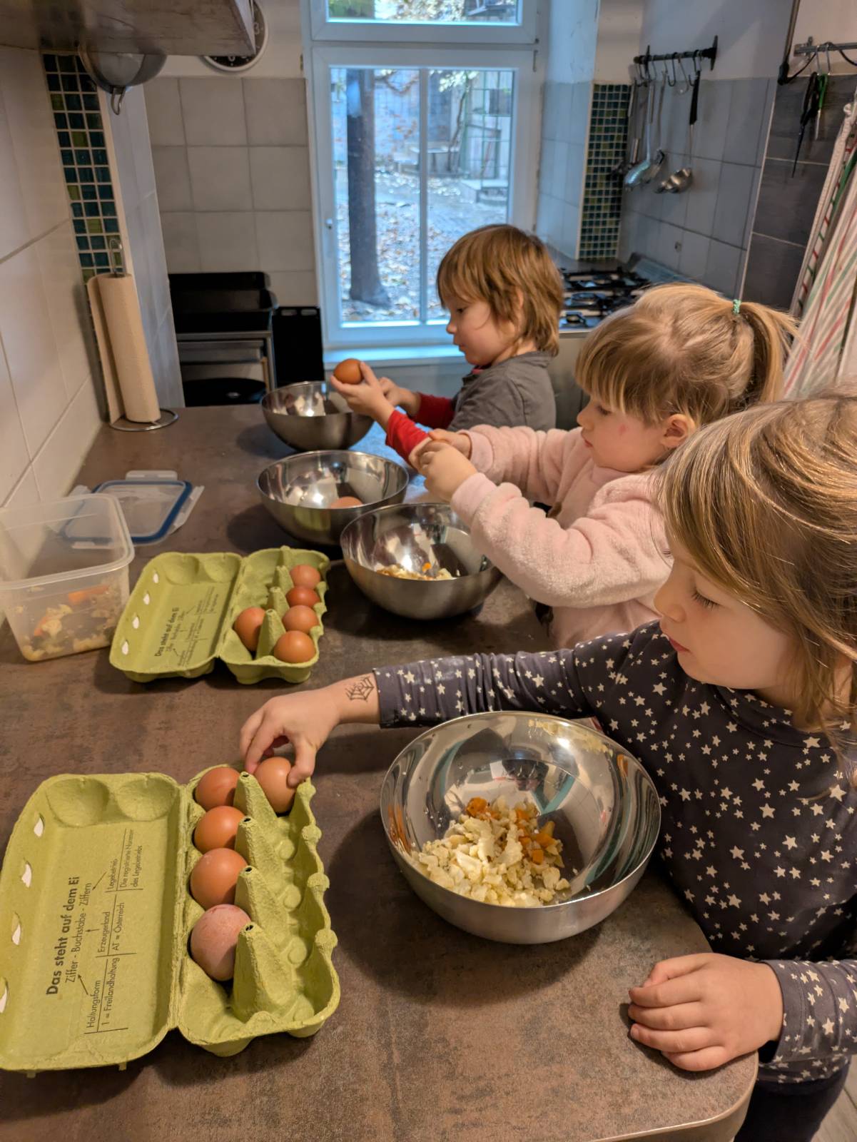 Wir kochen Eierspeis zum Frühstück